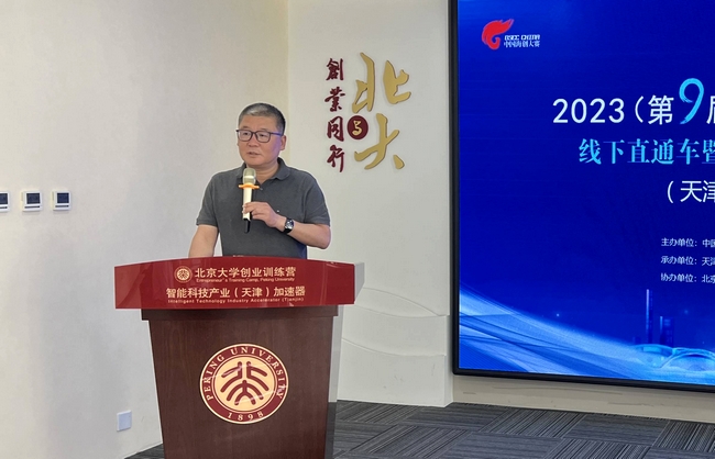 5月29日,2023(第九屆)中國海歸創業大賽線下直通車暨“海創中國”導師行(天津濱海高新區站)成功舉辦。活動由中國技術創業協會留學人員創業園工作委員會、天津濱海高新技術產業開發區管理委員會共同主辦,天津濱海高新技術產業開發區海外留學生創業園承辦,北京大學創業訓練營智能科技產業(天津)加速器協辦。中國技術創業協會副理事長、留學人員創業園工作委員會專職副會長兼秘書長郎靖,留創園工委會副秘書長胡頌華、天津濱海高新技術產業開發區科學技術局科長張婕、天津濱海高新技術產業開發區海外留學生創業園責任人李玉佳、北京大學創業訓練營智能科技產業(天津)加速器副總經理王湖平等相關單位負責人及7位評委導師出席活動。