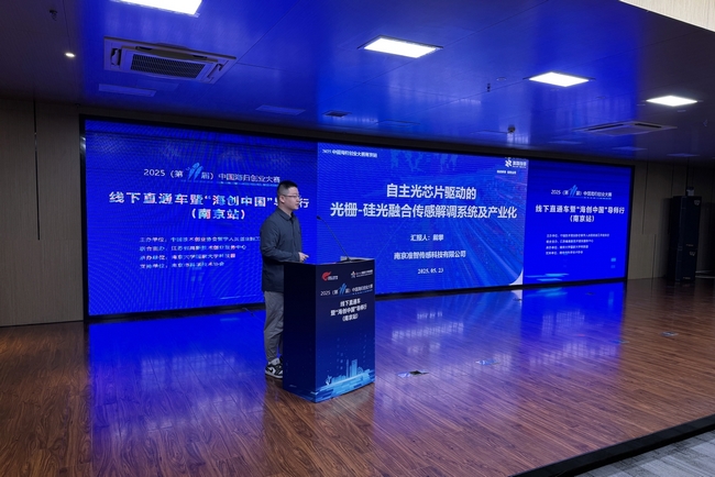 6個由南大科技園推薦的海歸創業項目進行了路演,介紹了各自的技術優勢、市場前景、商業模式以及團隊情況,涵蓋新一代信息技術、生物醫藥與大健康、綠色環保、智能制造等新興產業領域。導師評委們圍繞技術壁壘、細分市場、商業模式等多個維度進行了提問和點評。經導師團現場評議,南京準智傳感科技有限公司的“自主光芯片驅動的光柵——硅光融合傳感解調系統及產業化”、南京創藍科技有限公司的“城市碳排放三維立體觀測及碳中和評估智慧管理平臺”、南京生科智藥科技有限公司的“生物智能材料產業化開發”3個項目成功入圍本屆中國海歸創業大賽復賽。